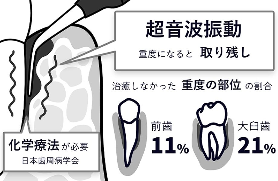 これまでの歯周病治療では、スケーリングやルートプレーニング(SRP)と呼ばれる方法で、歯石やプラークを物理的に取り除くことが一般的でした。